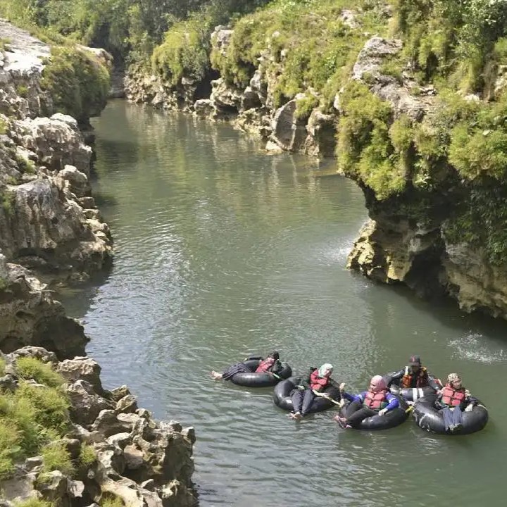 Rafting Sungai Oyo menjadi salah satu kegiatan yang seru dan memacu adrenalin. Lokasi Sungai Oyo yang dekat dengan Goa Pindul, menjadikan kegiatan bermain arung jeram ini cocok dilakukan setelah kamu berjalan-jalan di Goa Pindul. Saat kamu melakukan rafting Sungai Oyo, bukan hanya perjalanan seru dan menantang yang akan kamu dapatkan, namun juga berbagai pemandangan alam yang indah dan cantik. Kamu akan melihat hamparan pepohonan berkayu putih di sisi sungai serta berbagai macam batuan karst yang tinggi dan menjulang.